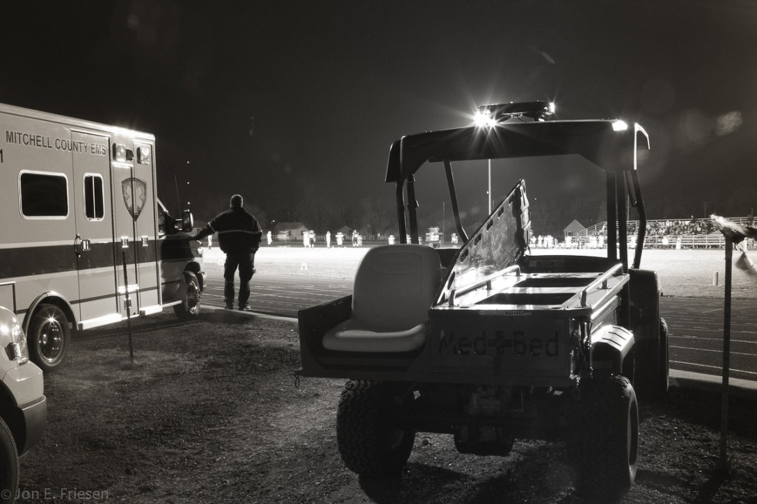 I am privileged to have spent my entire working life around people who do amazing things for others. Be it the occasional, chaotic race to restore a pulse or something as common, profound, and human as the holding of a hand in a time of crisis; these are my people. Sometimes the gift to a community and its people is simply to be present. This photograph is representative of a scene that plays out in communities across the nation. The vigil of an EMS crew off to the side of a community’s main event.