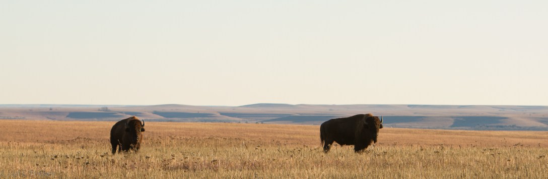 Walking through the Flint Hills in the Tallgrass Prairie National Preserve, we crossed the ridge line to find bison standing on the pathway. All of the warnings from the ranger and the signage ran through our heads reminding us that the bison are wild, unpredictable, and best kept at a distance. Also running through my head was what it must have been like to see millions of them on the prairie. Something we’ll never see, yet fascinating to think about.